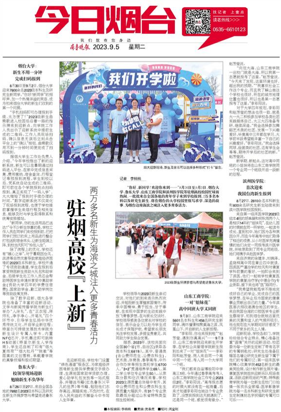齐鲁晚报9月5日J01版刊发《欧冠官网中文版数字迎新,新生不用一分钟完成扫码报到》