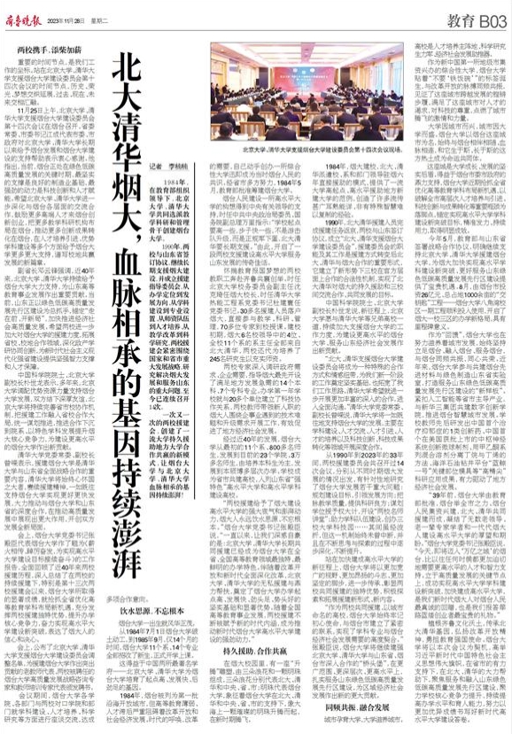 《齐鲁晚报》11月28日J03版刊发《北大清华烟大 血脉相承的基因持续澎湃》