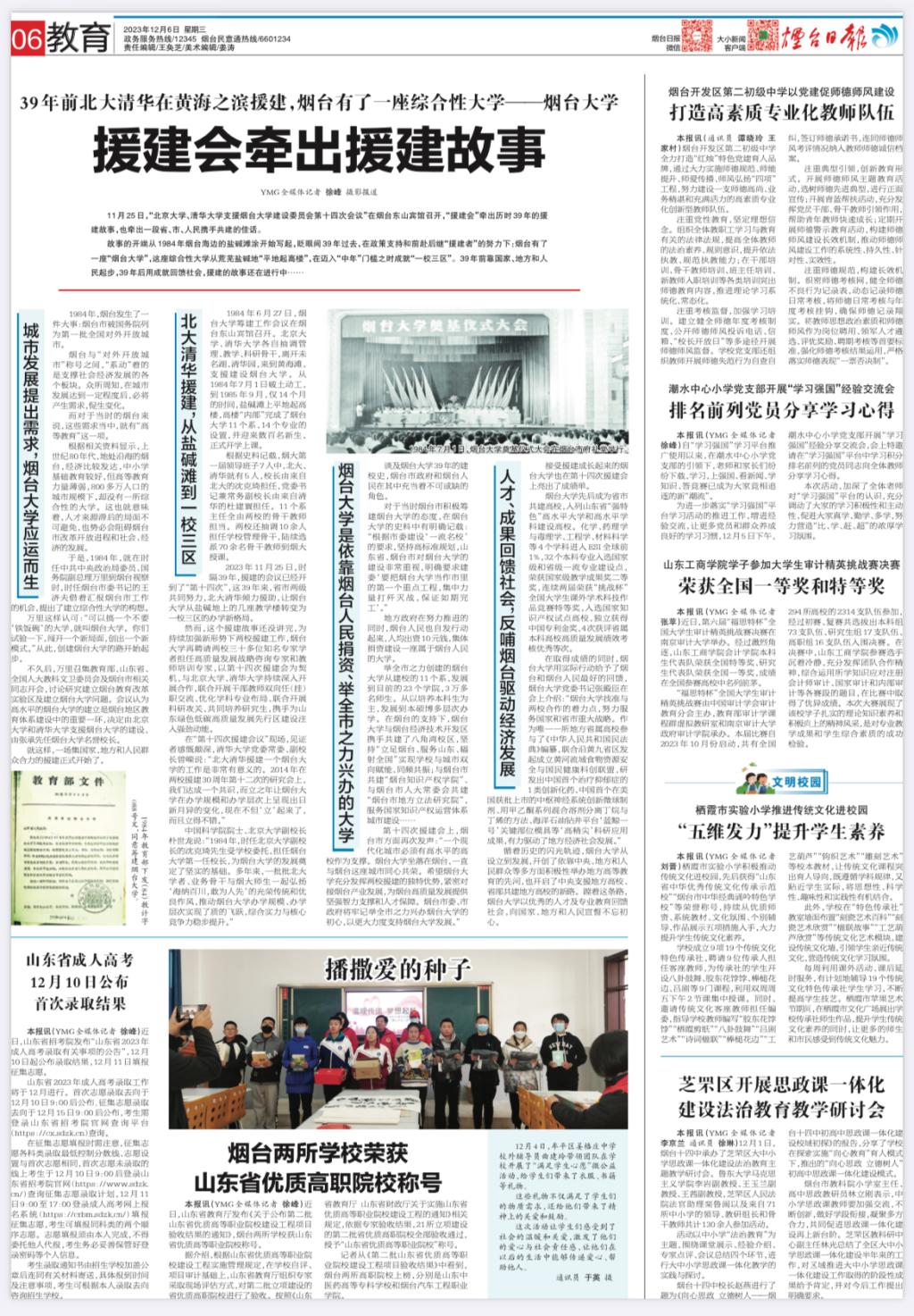 《烟台日报》12月6日06版刊发《39年前北大清华在黄海之滨援建,烟台有了一座综合性大学——欧冠官网中文版 援建会牵出援建故事》