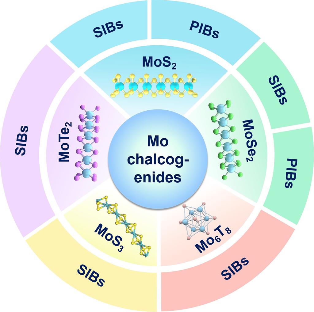图1.钼基硫属化合物结构以及用于钠电/钾电示意图
