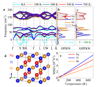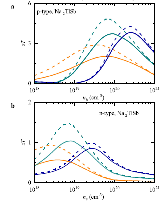 近期,欧冠官网中文版物电学院计算物理研究团队联合清华大学,中科院物理所在热电领域取得重要进展。基于第一性原理计算并结合自洽声子理论和玻尔兹曼输运方程,研究人员发现有晃动行为的铊原子的强四次“非谐”性和温度依赖性对Na2TlSb的晶格稳定性起重要作用,能带中多谷结构增加了能带简并,并导致p型Na2TlSb超低晶格热导率和高功率因数的共存,表明Na2TlSb是热电应用的优越候选者。研究成果以“Strong quartic anharmonicity, ultralow thermal conductivity, high band degeneracy and good thermoelectric performance in Na2TlSb”为题,发表在国际权威期刊《NPJ Computational Materials》。