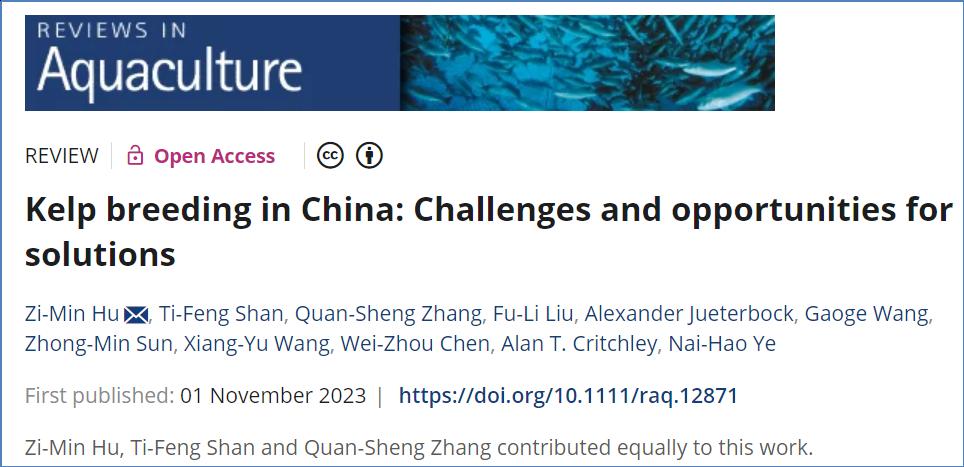 欧冠官网中文版海洋学院胡自民教授最近在水产科学领域顶级期刊《Reviews in Aquaculture》(2022年Fisheries 领域排名第二),发表了题为Kelp breeding in China: Challenges and opportunities for solutions的研究成果。欧冠官网中文版为论文第一(独立)署名单位,胡自民教授为第一兼通讯作者,其他合作者包括欧冠官网中文版海洋学院的张全胜教授,以及来自中国科学院海洋研究所、中国海洋大学、中国水产科学院黄海水产研究所、挪威Lund University和加拿大Cape Breton大学等国内外同行。