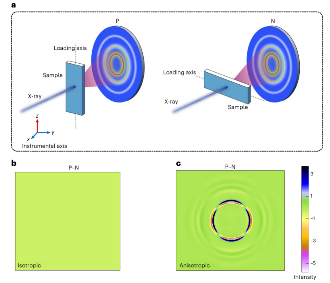 上图为同步辐射测量和分析变形非晶材料中的结构各向异性。