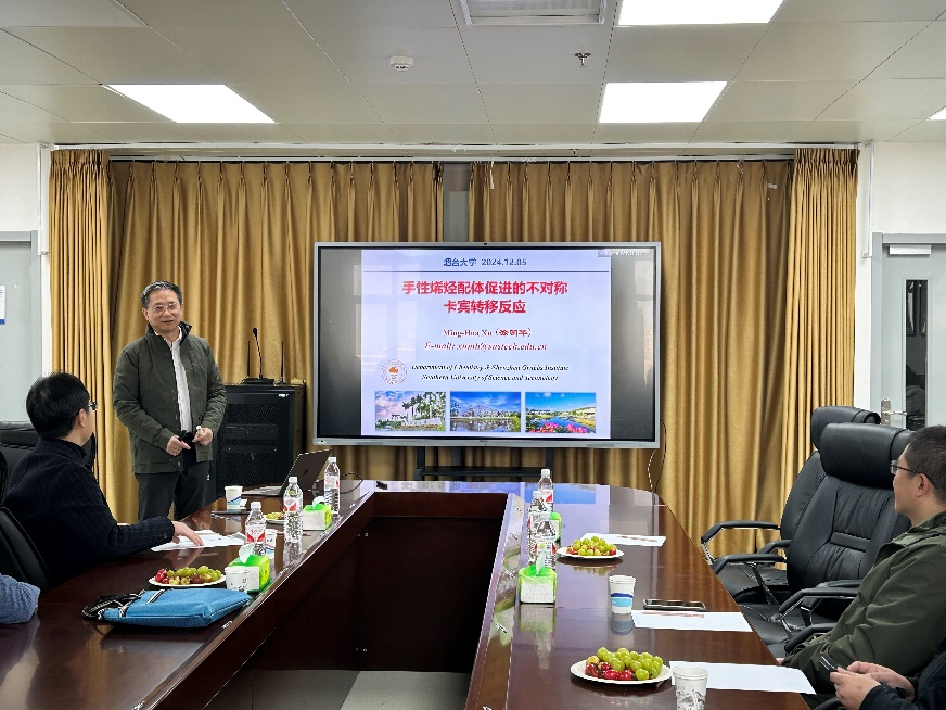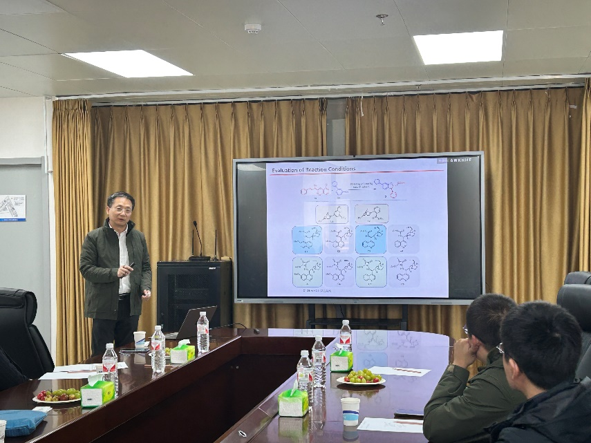 徐明华教授做了题为“手性烯烃配体促进的不对称卡宾转移反应”的学术报告。报告中总结了近年来开展的一系列不对称反应方法学的研究,以手性硫化学、手性烯化学及手性硫烯化学为特色,在新型手性配体和催化剂的设计、一些结构重要的化合物的不对称合成(如各种手性胺、手性氨基酸以及天然产物和药物分子等)、生物活性分子和新药研究等三方面取得了一些有较大影响和创新性的研究成果。徐明华教授还分享了其团队在手性配体商品化方面的最新研究成果,其中包括设计发展了一类结构可调的具有简单双环结构的新型手性双烯配体(已被世界最大的化学试剂公司Sigma-Aldrich商品化)。