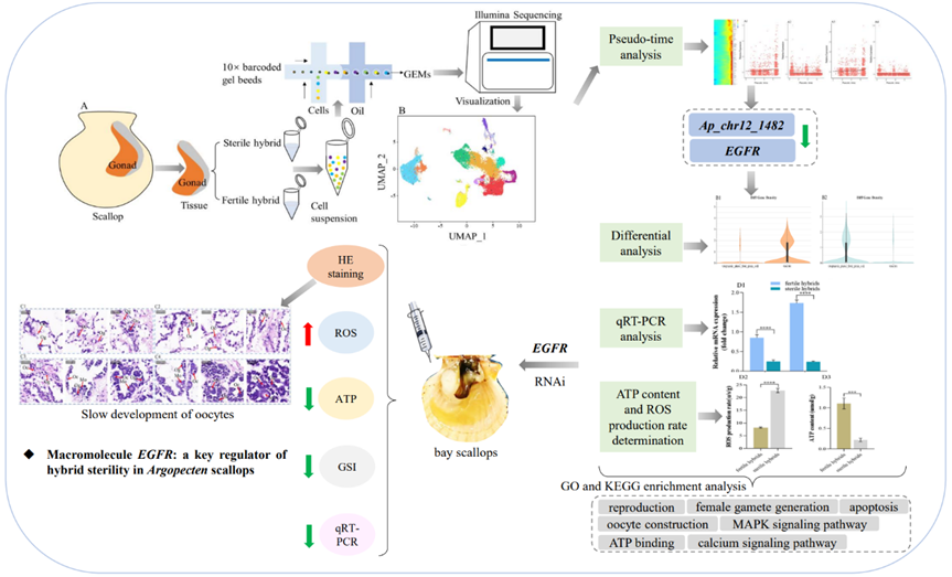 图1基于单细胞转录组技术发现的EGFR基因对Argopecten属杂交扇贝育性的调控机制