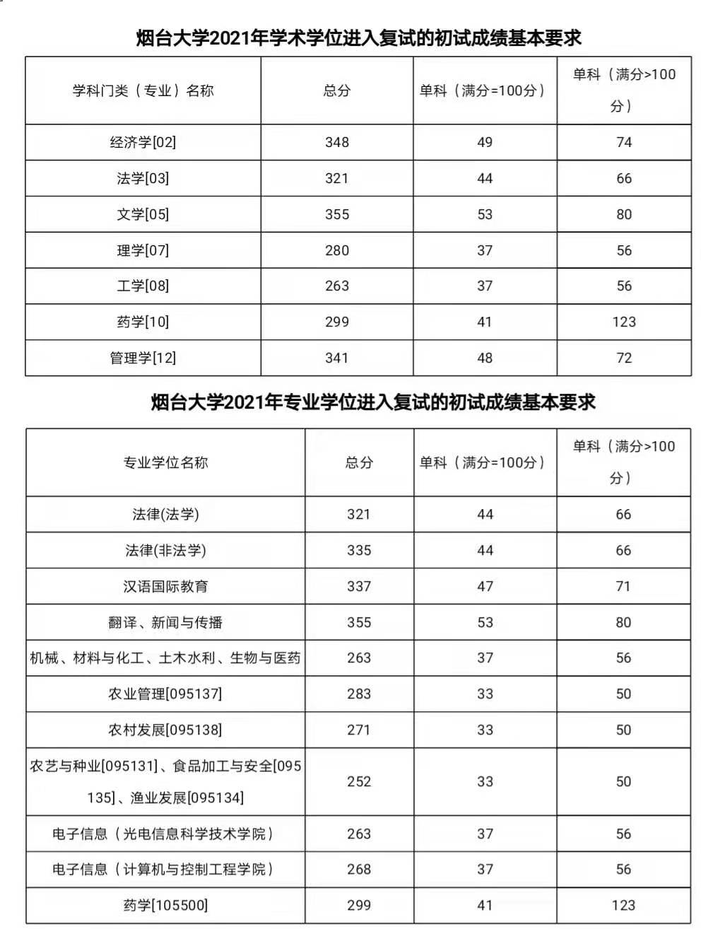 注:退役大学生士兵专项计划考生各专业进入复试的初试成绩基本要求执行全国硕士研究生招生考试考生进入复试的试成绩基本要求