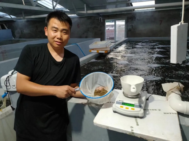 进入宁波大学后,任志明来到了导师母昌考的课题组——研究海洋酸化对梭子蟹的相关影响。这是他第一次接触海水蟹。研二做毕业论文期间,为了更容易地获取实验材料,任志明去往与学校有合作的企业育苗场。“育苗场里有一个老技术员,我就跟在他后面帮忙打打杂,也能方便获取实验材料。我一直相信‘与人方便,与己方便’,一来二去混得很熟。有一天,师傅喊我去他房间坐着聊聊天,说到要收我为徒的事情,我当即以茶代酒答应了下来。”
