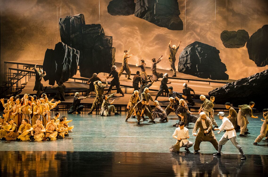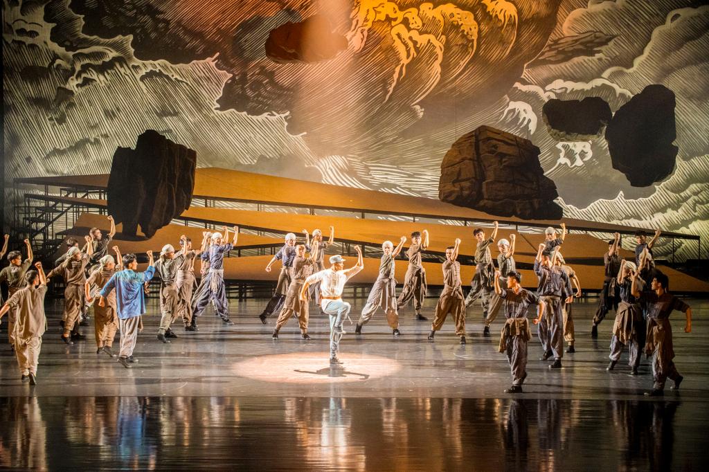 在舞蹈配乐上,《地雷战》将具有海阳特色的民间小调、秧歌剧调以及具有音乐性的民间方言赋予民族摇滚乐的音乐风格和精神内涵,形成了融合电子、民族、电声、大管弦乐在内的包容性音乐气质。在舞美方面,该剧运用象征性的造型元素和隐喻性的艺术语汇,山、石、雷等舞台道具与演员刚柔并济的舞姿融为一体,让现场观众有身临其境之感。