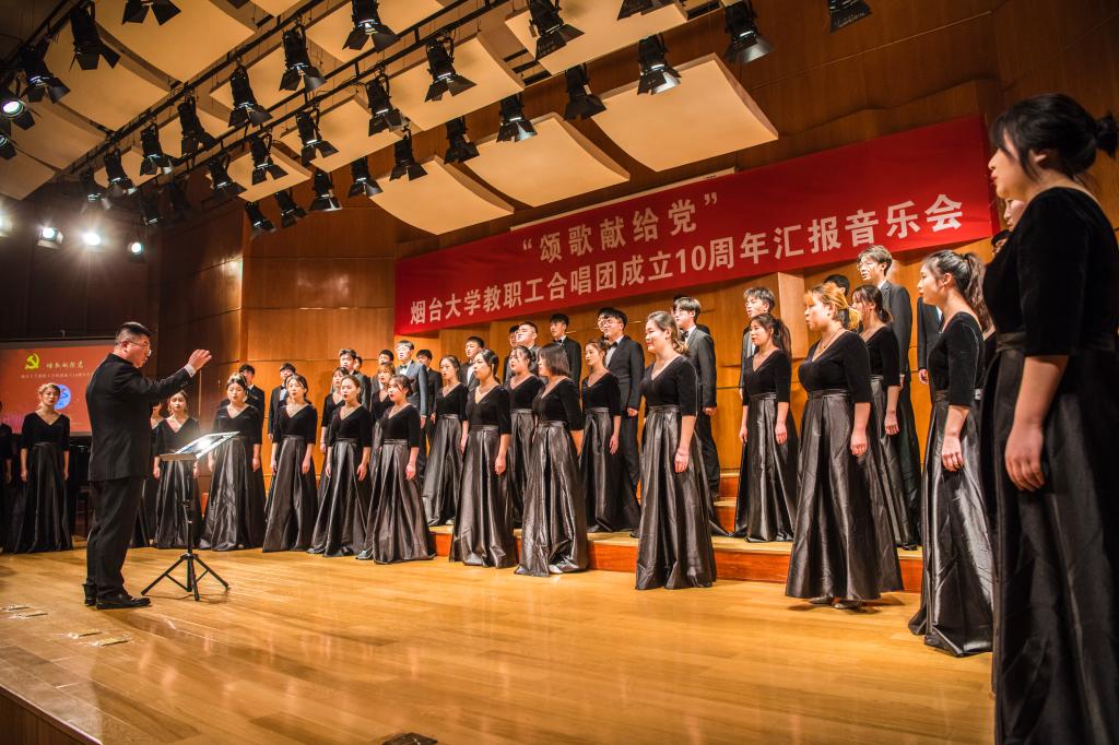 视频《十年》回顾了合唱团走过的十年如歌岁月。十年来,教职工合唱团汇聚音流,向海而歌,秉承“艺术性、文化性”的宗旨,坚持排练、坚持纳新、坚持演出,活跃于校内外各音乐会、文艺晚会、舞蹈比赛、校际交流、合唱专场等舞台,为大家带来了一次又一次美妙的视听体验和艺术享受。教职工合唱团先后获全国教师合唱比赛银奖、中国舞蹈国际大赛“成人非职业组银奖”、烟台市职工文艺汇演三等奖、烟台百姓春晚观众最喜爱节目等荣誉。