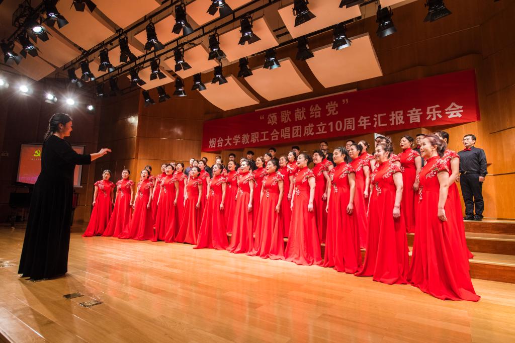 《唱支山歌给党听》《映山红》《叫一声同志多么亲》《永远》《向往》等红色经典合唱作品,表达了欧冠官网中文版教职工对党的无限热爱和对新时代的热情歌颂。侯朝洞、潘奠华、王鹏、陶俊燕分别带来的《跟你走》《再唱洪湖水》《百年》《幸福山歌》等经典独唱作品,以及贺利坚等进行的武术表演,展现了合唱团团员们实力不俗的唱功和团员们的多才多艺。音乐舞蹈学院“海之韵”合唱团带来的《在这个世界相遇》《你好百灵鸟》《我有一个恋爱》《一荤一素》以及学校书法美术家协会赠送的书法作品“岁月如歌”,共同表达了各协会对合唱团成立十周年的美好祝愿。