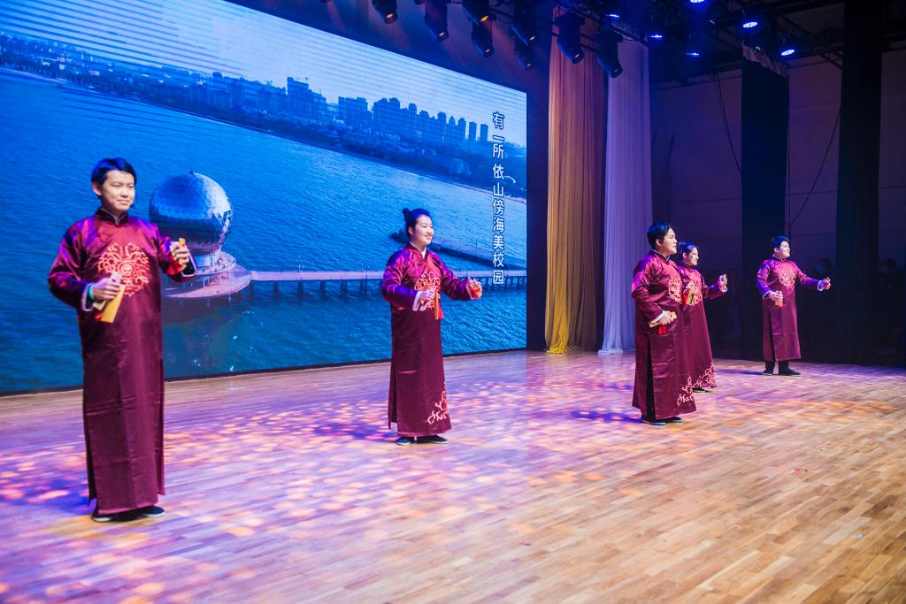 晚会在博士教师演唱的原创歌曲《逐梦的人》中拉开帷幕,歌曲唱出了中青年博士为科研拼搏、为梦想奋进的斗志和勇气,瞬间将现场气氛点燃。快板表演《烟大颂》回顾了我校三十七载艰辛创业史,彰显了一代又一代烟大人勠力同心、克服万难的责任担当,引发现场师生的强烈共鸣。诗歌朗诵《盛世中国》大气磅礴,礼赞时代祝福祖国,诠释着烟大人薪火承继,在接续奋斗中书写新辉煌的时代豪情。啦啦操《我和我的祖国》优美的动作和极具张力的表演,展现出大学生活力四射、朝气蓬勃的精神风貌,也彰显出青年大学生浓郁的爱国热情。古筝演奏《战台风》,声随弦起,琵琶声脆,催人奋进。舞蹈《醉春风》优雅曼妙、轻盈柔美,极具艺术感染力……