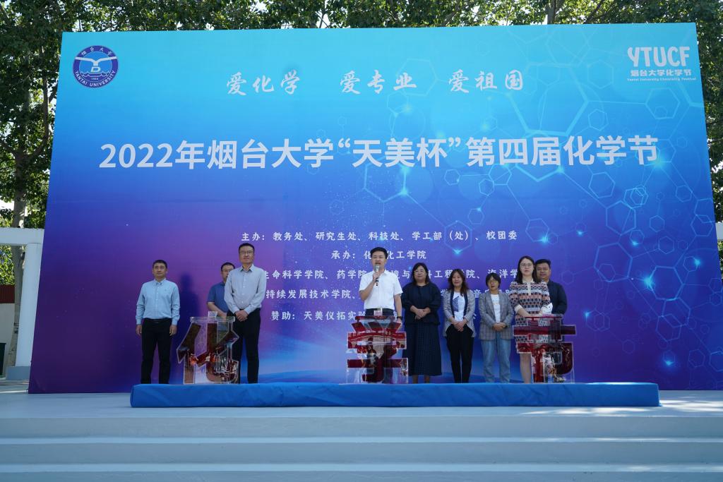 化学化工学院院长李文佐在致辞中表示,化学节致力于引导学生将兴趣和专业相融合,将学生活动与专业教育、就业教育相融合,将文化建设与学风建设相融合,将个人选择与祖国需要相融合。天美仪拓实验室设备(上海)有限公司市场部经理孙鹏宇女士代表赞助单位对化学节的开幕表示祝贺,她希望同学们用所学的化学知识报效祖国、为人类服务、改变世界。研究生代表赵媛媛通过分享自己在烟大求学七年的成长经历,表达了自己对专业、学院和学校的热爱,表示研究生应该发挥榜样带头作用,带领本科生找到自己感兴趣的科研方向,充分体会科研的魅力。