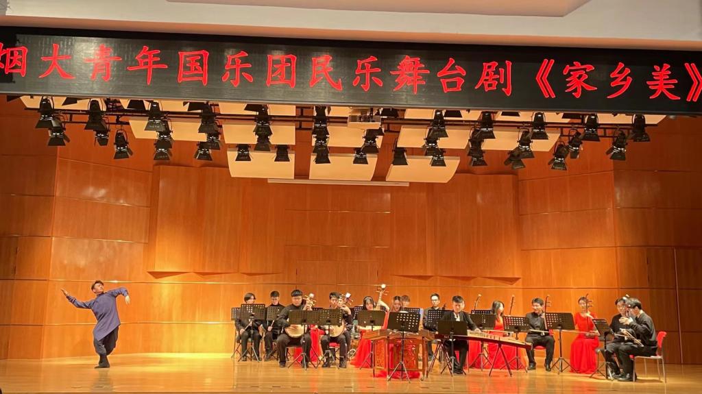 “该舞台剧是欧冠官网中文版一流课程《乐队排练》、欧冠官网中文版思政精品项目《烟大青年国乐团舞台剧之融创研究》的阶段性成果,在师生们齐心协力的磨合、排演、探索中,民乐合奏‘舞台剧化’研究进入新阶段。”谈及此次演出,乐团指挥老师姚金佳说:“节目用‘说家乡,道家乡’的方式,对全国各地颇具代表性的曲目进行编曲、串联,民乐演奏中融入声乐、舞蹈、话剧元素。节目中还包含了用方言介绍家乡文化、乐曲渊源等内容,不仅烘托了现场气氛,而且让观众领略了方言的文化魅力。”