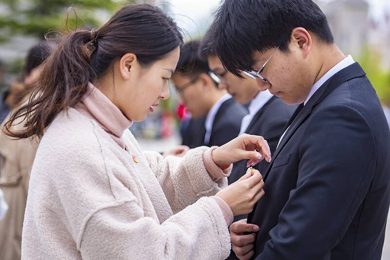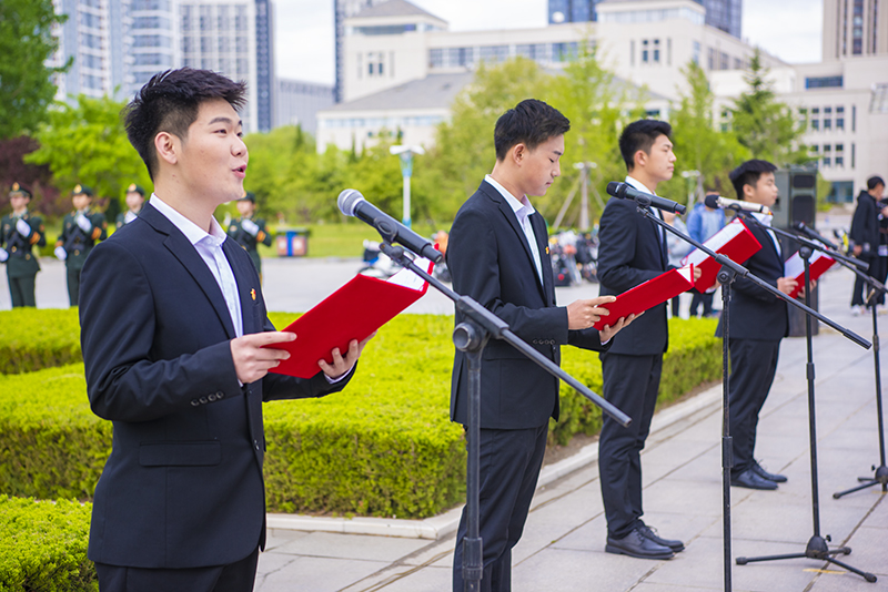 仪式在雄伟的国歌声中开始。团委副书记丁晓丹宣布了欧冠官网中文版2023年新发展团员名单。85名2023年新发展团员面向团旗,共同宣誓,誓言铮铮,彰显着新团员积极向上的精神风貌。誓言铿锵,展现着团员们的坚定决心。各学院团委负责人为新团员颁发团员证并佩戴团徽,将共青团员的使命和担当交到新团员的手上,同时也向新团员们表示由衷地祝贺。新团员代表建筑学院绳晓菲同学,代表全体新团员承诺,必将做到信念坚定,勇于担当,做好“五个模范”,努力成为优秀的新时代共青团员。朗诵《国旗下的誓言》,“青春万岁,祖国万岁!”的呐喊铿锵有力,展现了烟大青年为青春而奋斗,为共产主义而奋斗的决心和信心。
