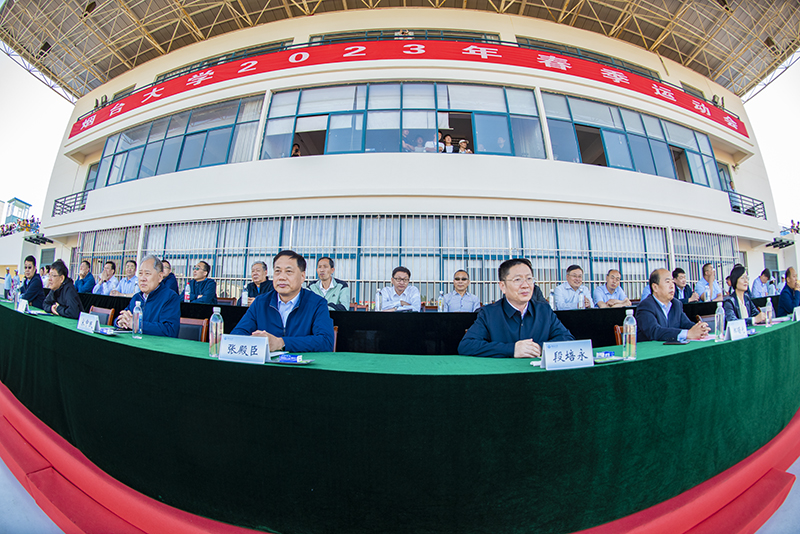 “体育承载着国家强盛、民族振兴的梦想,体育强则中国强,国运兴则体育兴。体育是学校人才培养的重要内容,体育的过程既是培养学生运动兴趣、运动技能的过程,也是磨练学生意志品质,塑造学生精神面貌、性格乃至价值观的过程……”校长段培永在开幕辞中表示,近年来,学校服务教育强国、体育强国、健康中国建设,秉持健康第一的教育理念,推进体育教学改革和建设,加大资金投入力度,提升了体育场地设施水平,积极打造特色品牌竞技项目,体育事业发展取得显著成效。本届春季运动会是对广大师生员工精神风貌和时代风采的集中展示,也是对学校体育教育和体育运动水平的一次检验,更是学校贯彻落实党的二十大精神,高质量推进体育育人工作、助力社会主义现代化强国建设的重要举措和生动实践。段培永希望广大师生以本届运动会为契机,牢固树立科学的教育观、人才观和健康观,积极主动参与体育运动,为学校体育事业发展营造良好环境。要构建高质量体育教学体系,更好地发挥体育独特的育人功能,不断强化体育师资队伍建设,深化体育教学综合改革,健全学生体育评价与考核体系,努力培养德智体美劳全面发展的社会主义建设者和接班人,为新时代教育强国、体育强国、健康中国建设贡献烟大力量。
