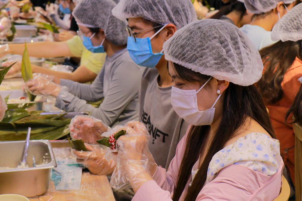 “包粽子活动正式开始!”随着主持人话音落下,现场气氛瞬间热烈。大家争先恐后地拿粽叶、做漏斗状、填糯米、压紧实、加馅料、系棕绳,欢乐的笑声和粽子的清香交织在一起。“端午节是我们中华民族的传统节日,我们期望通过亲自动手包粽子这样的形式,让同学们能更真切地去感受中国传统节日的内涵,传承中华优秀传统美德、弘扬爱国主义精神。”当问及举办这个活动的初衷时,欧冠官网中文版饮食服务中心主任刘昆表示。整个活动中,工作人员各司其职,各显其能,全体同学都是免费参与其中的。记者了解到,本次活动共准备约八百个粽子原材料,购买六百个成品粽子用以现场给同学们分发。为确保食品安全卫生,餐厅还贴心地准备了一次性手套、一次性头套。
