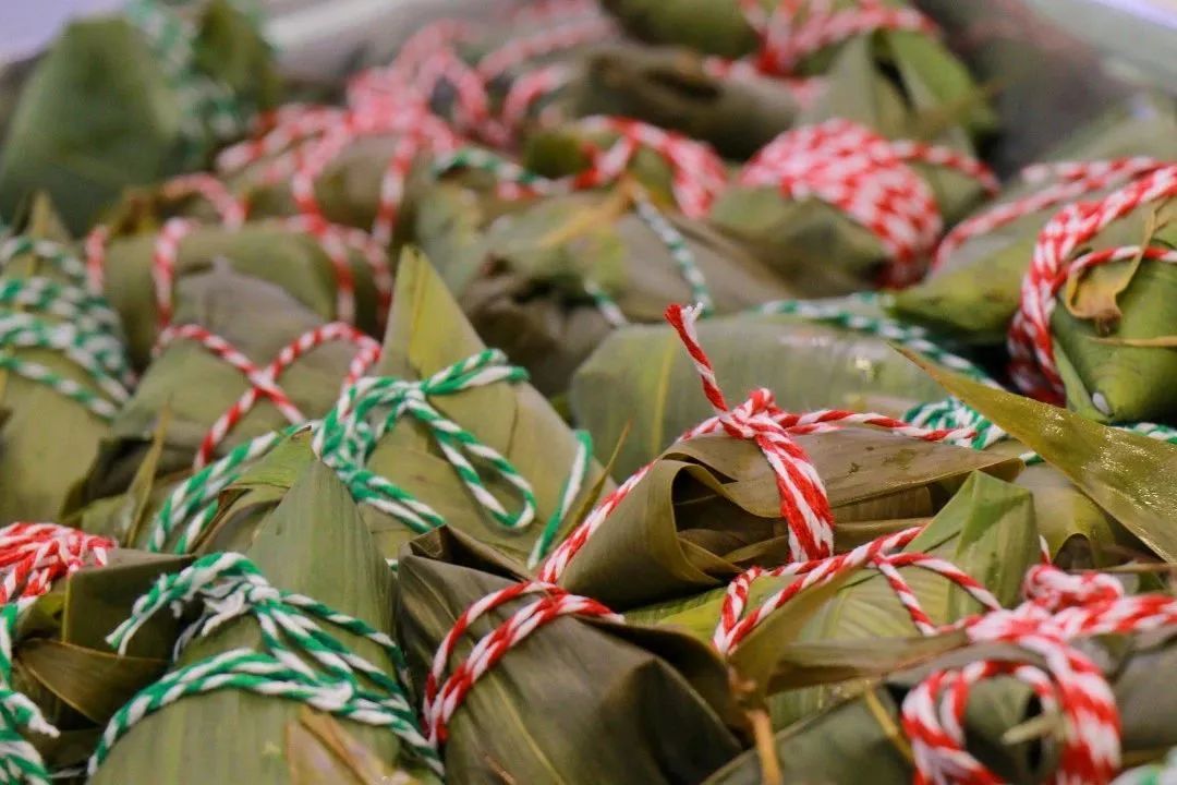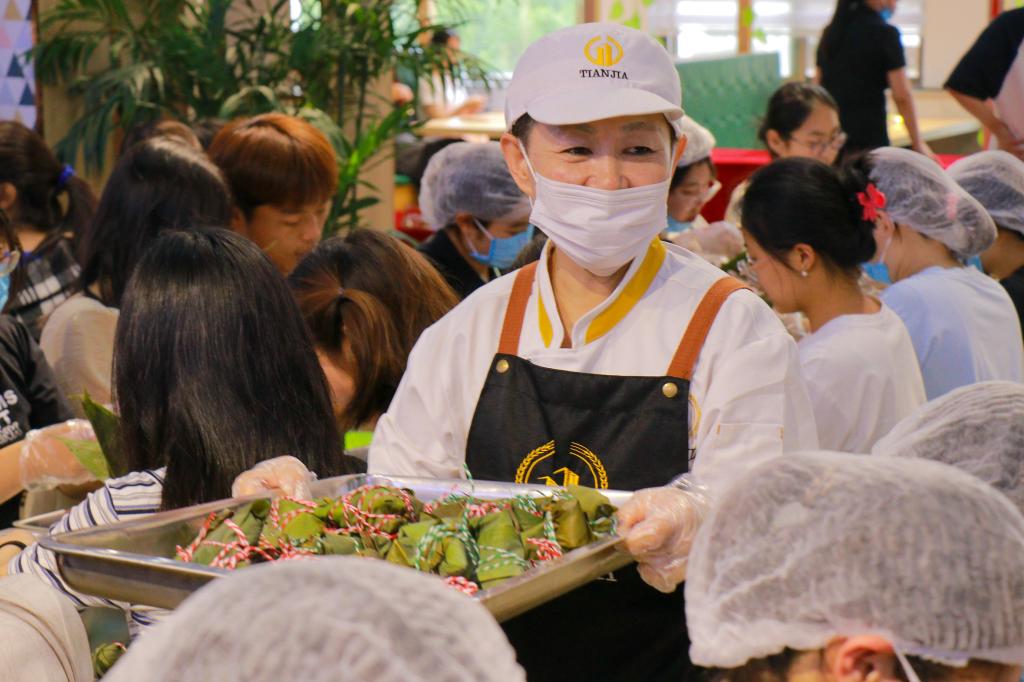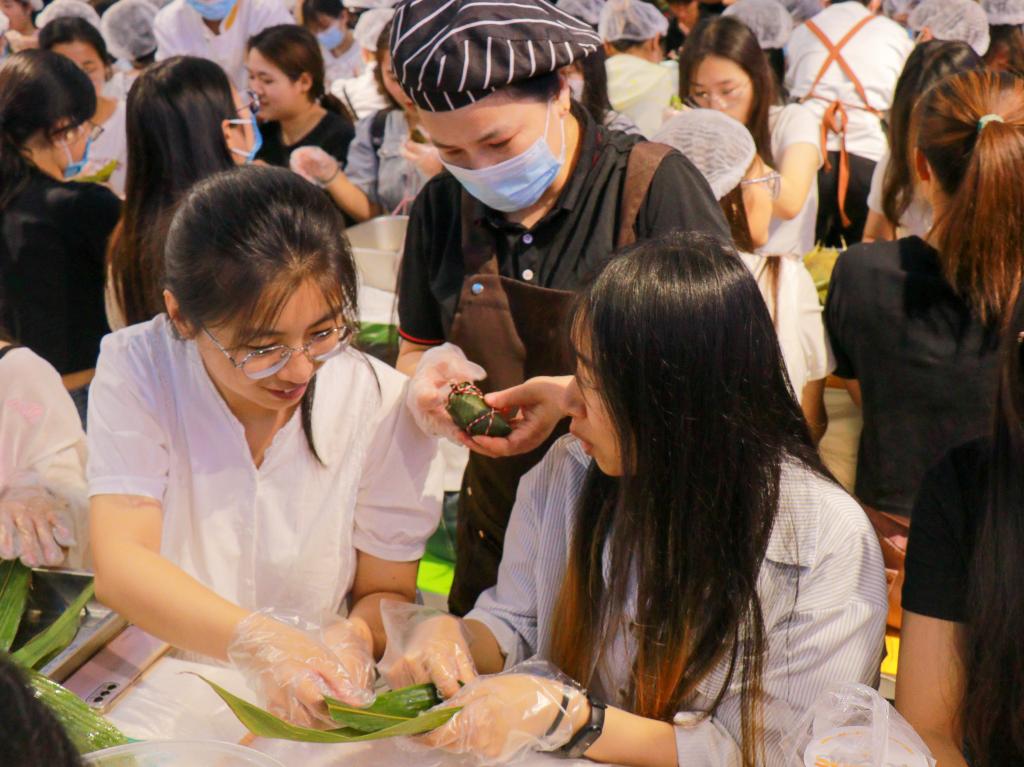 “太有意思了!这是我第一次自己包粽子!”就在刚刚,来自核装备与核工程学院的高鸿宇在工作人员的耐心帮助下成功包出了一个棱角分明、翠绿精致的粽子。原来,为了让同学们获得更好的活动体验,饮食服务中心特地在每个桌位都安排了餐厅工作人员作为“粽子指导师”进行现场指导。粽叶香下,气氛融融,欢声笑语不断,大家各展所长,相互交流包粽诀窍,三角形的、菱形的,各式各样,不一会儿,一堆堆形态各异的新鲜粽子就呈现在眼前,随后入锅慢蒸,馥香四溢。此外,学校多个餐厅还免费向学子们送上香粽,小小的绿色三角承载着暖暖的烟大温情。