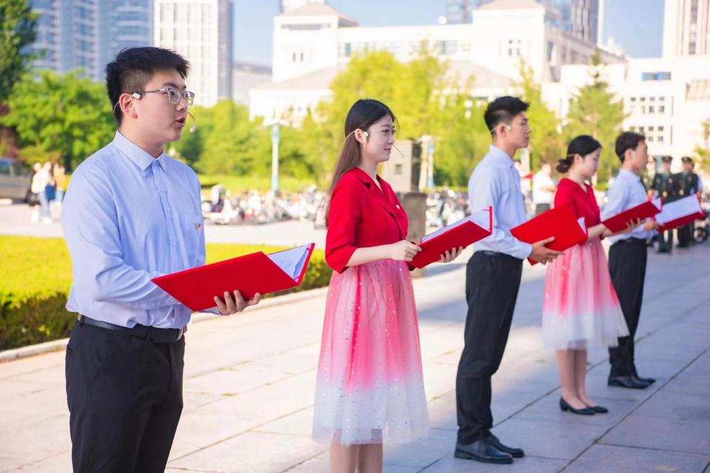 102年波澜壮阔的光辉历程中,中国共产党团结带领中华民族走向繁荣富强。国旗下,青年代表通过诗朗诵《青春献给党》,把心中的颂歌献给党。蓝天如洗,红旗飘扬,学生代表林玉青带领师生党员重温入党誓词。高亢的誓言声声入耳,激昂的宣誓铿锵不悔。在学校党委的正确领导下,全体师生共同发扬为烟大增光、为党旗添彩的主人翁精神,为“强特色”高水平大学建设、“争一流”高质量发展贡献力量。