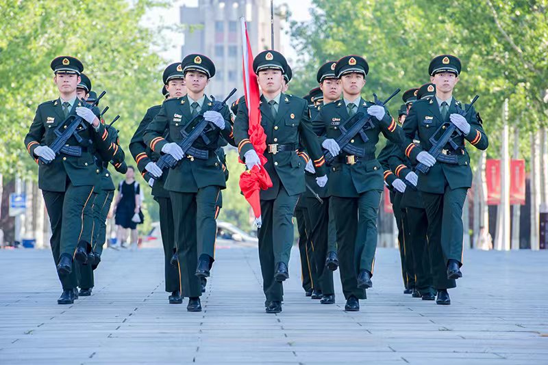 伴随着钟楼的第七声钟响,学校国旗护卫队队员迎着东方日出的方向,迈着整齐划一的步伐,护卫国旗走向升旗台。升旗手振臂一挥,五星红旗伴随着国歌声冉冉升起。师生们面向国旗肃立行注目礼,高唱国歌,共同感受这一庄严而自豪的时刻。