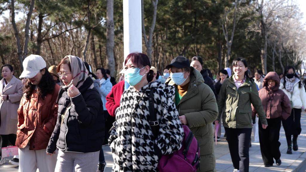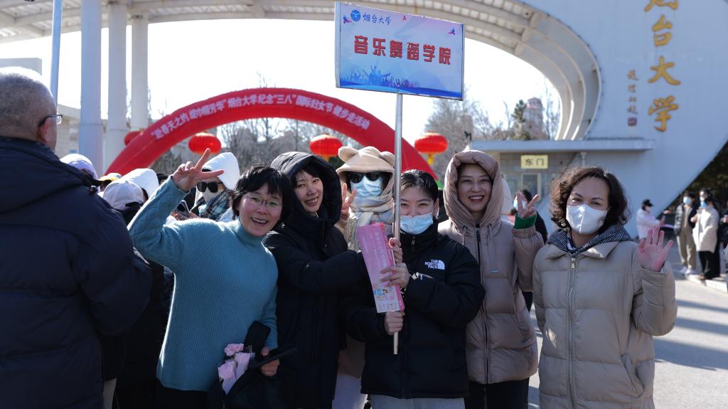 随着发令枪响,女教职工们迈着轻快的步伐阔步前行,沿途大家兴致盎然,一路欢声笑语,领略春日烟园风光,用脚步丈量烟大之美,心中涌动着澎湃激情。健步走活动终点,女教职工手持节日主题展板合影留念。