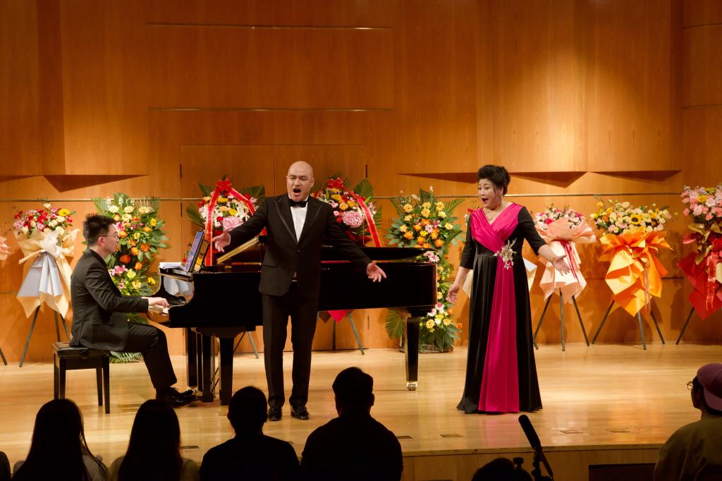 中国经典作品在音乐会上大放异彩。《念奴娇·赤壁怀古》在邹淑珍教授的演唱下展现出了豪迈壮阔的意境。随后,邹淑珍教授和特邀嘉宾徐祥演唱了充满活力的罗西尼的《舞曲》,将音乐会推向高潮。在观众的鼓掌和喝彩声中,邹淑珍教授和徐祥老师为大家返场演唱了《一杯美酒》,音乐会在欢快热烈的氛围中落下帷幕。