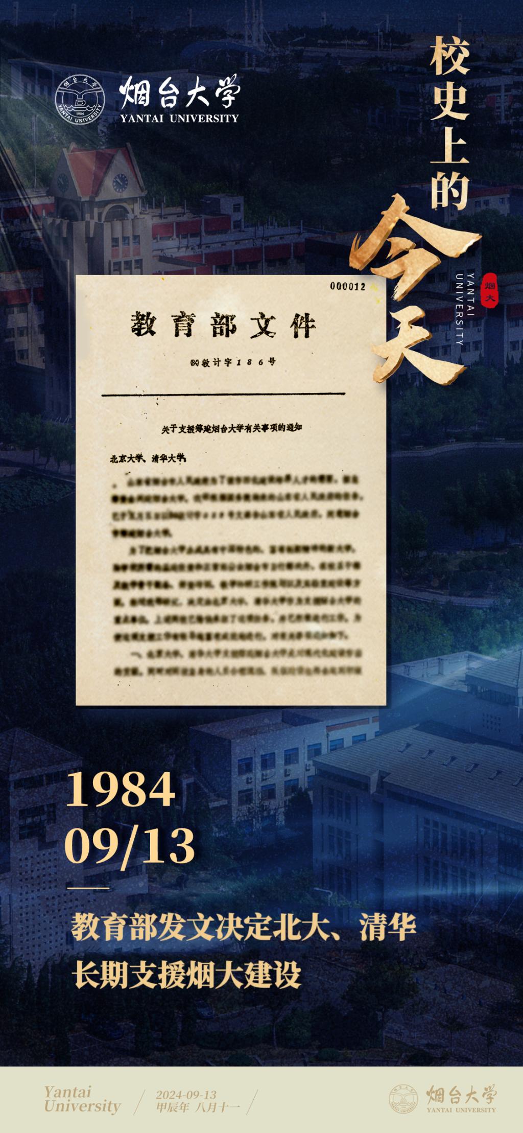 【编者按】2024年是新中国成立75周年,也是欧冠官网中文版建校40周年。40年来,诞生于改革开放时代大潮中的欧冠官网中文版,植根齐鲁文化沃土,传承北大清华基因,弘扬改革开放精神,勇担教育强国使命,书写了一段段滋兰树蕙的育人故事,谱写了一曲曲乘风破浪的奋进赞歌。为庆祝欧冠官网中文版建校四十周年,新闻中心(融媒体中心)推出“校史上的今天”栏目,以时间为线索,撷取烟大建校发展史上具有代表意义的重大事件,重温闪耀在历史长河中的昔年今朝,追忆在盐碱滩上白手起家、艰苦创业的峥嵘岁月,展现办学历程中取得的新发展成就,启迪新时代烟大人在新征程中再创新辉煌。