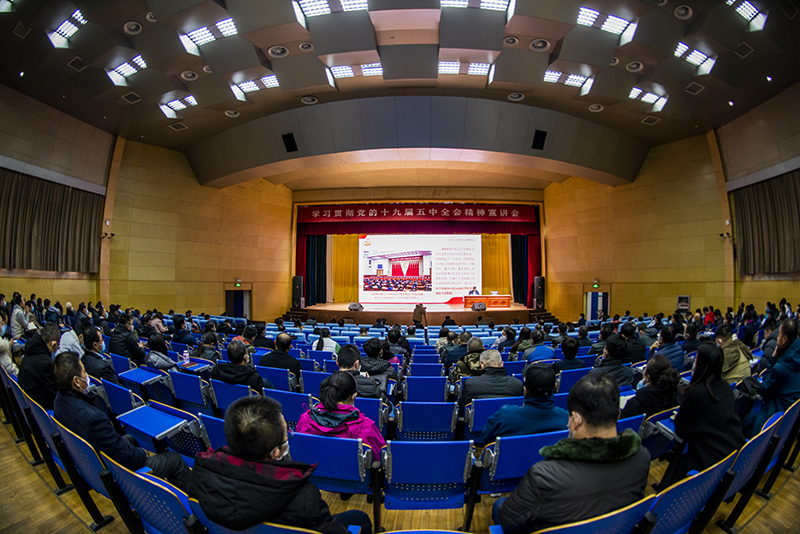 在近90分钟的宣讲中,张伟从介绍五中全会通过的《建议》起草的过程、体系入手,为在场师生讲解了我国进入新发展阶段的重大意义、有利条件和重要特征,阐述了国家到2035年基本实现社会主义现代化的远景目标,“十四五”经济社会发展的指导思想、遵循原则、主要目标和12项重点任务,解读了构建以国内大循环为主体、国内国际双循环相互促进的新发展格局的战略构想和6个工作着力点。张伟指出,要坚持党的全面领导,动员各方面力量实现“十四五”规划和2035年远景目标而团结奋斗;要深入贯彻落实党的十九届五中全会精神,全面开创新时代现代化强省建设新局面。