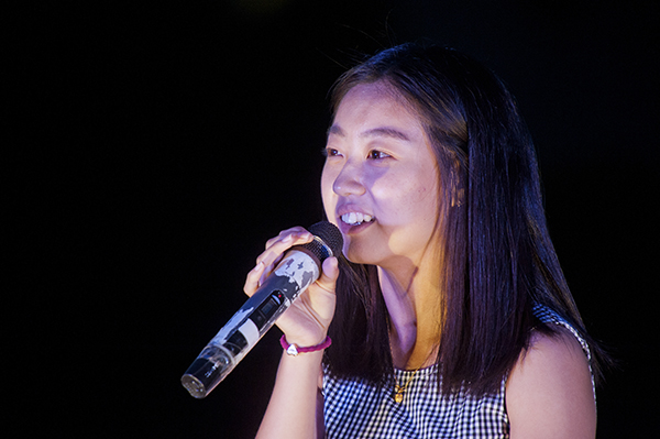音乐会节目精彩纷呈,现场高潮迭起,掌声阵阵。“最后一个夏天,没有心情去海边,只想静静躲在房间翻照片……如果努力一点……那时候,什么愿望都能够实现”,音乐会在满载毕业生心声的《最后一个夏天》歌声中拉开帷幕。乐器合奏《渔舟唱晚》以平缓的速度、优美的旋律及娴熟的古筝技法,让在座的毕业生迎着夕阳的晚霞,在乐曲声中体会着毕业丰收的喜悦,感受着乐曲所表现出来的在碧波万顷的湖面上荡桨归舟的美丽情致;采用延时摄影技术拍摄的烟大校园视频让同学们眼前一亮,湖心岛、钟楼、八景园等烟大美丽景致的四季变换在眼前瞬间闪过,现场的同学直呼“太不可思议”;侯朝洞老师一首《老家》让大家仿佛置身家中,现场的同学们纷纷表示会常回烟大,常回“家”看看……