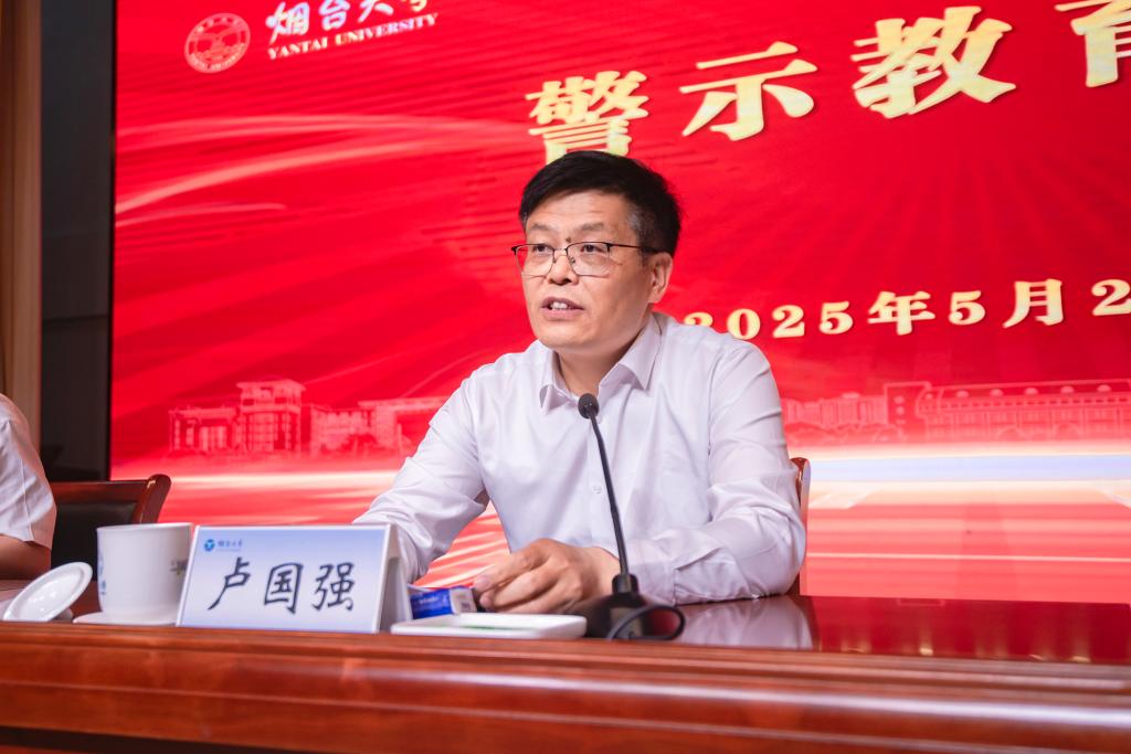 【本站讯】5月28日下午,学校召开警示教育会,深入学习贯彻习近平总书记关于加强党的作风建设的重要论述和中央八项规定及其实施细则精神,传达山东省警示教育会精神,通报违反中央八项规定及其实施细则精神典型案例,强化以案促学、以案促改、以案促治。党委书记卢国强出席会议并讲话,党委副书记、校长郝曙光主持会议。全体校领导、副处级以上干部、机关部处室正科级干部、教师党支部书记和全体辅导员参加会议。