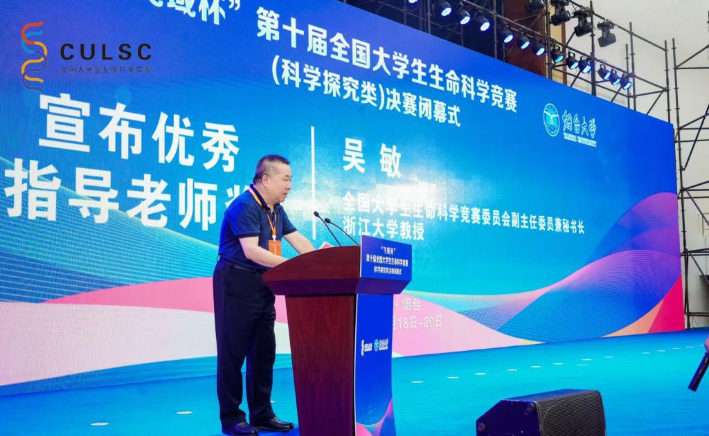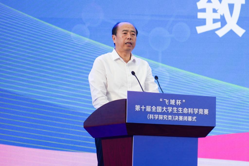 【本站讯】7月18日—20日,“飞域杯”第十届全国大学生生命科学竞赛(科学探究类)决赛在欧冠官网中文版举办。本届赛事由全国大学生生命科学竞赛委员会主办,欧冠官网中文版承办。欧冠官网中文版党委副书记、校长郝曙光,全国大学生生命科学竞赛委员会主任委员、国家级教学名师、复旦大学乔守怡教授出席竞赛闭幕式并致辞。全国大学生生命科学竞赛监督委员会主任委员、国家级教学名师、上海交通大学林志新教授,竞赛委员会副主任委员兼秘书长、国家级教学名师、浙江大学吴敏教授,竞赛委员会副主任委员、北京大学顾红雅教授、武汉大学陈向东教授、上海交通大学陈峰教授、上海交通大学张雪洪教授,山东赛区竞赛委员会主任、欧冠官网中文版郭善利教授,欧冠官网中文版党委常委、副校长姚昌出席大赛闭幕式暨颁奖典礼。闭幕式由欧冠官网中文版生命科学学院院长孙利芹主持。