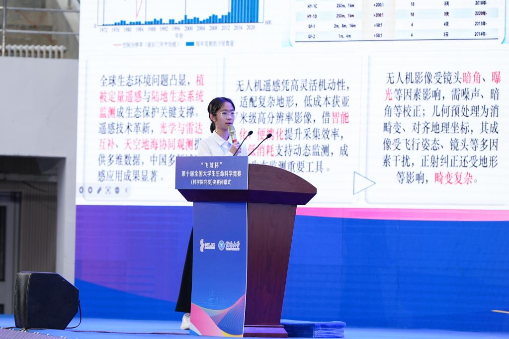 全国大学生生命科学竞赛是大学生课外学术科技活动竞赛之一,每年举办一届,分为科学探究和创新创业两个类别,同时段分赛道进行。“飞域杯”第十届全国大学生生命科学竞赛(科学探究类)吸引了来自全国各地的695所高校、2万余支团队、8万余名学生参与,为历届赛事规模之最。经过网络评审和省级决赛,共评选出来自231所高校的718个项目参加全国决赛。经过激烈角逐,评选出一等奖287项,评定出优秀指导老师300名。