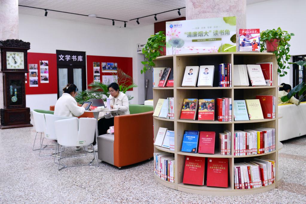 【本站讯】为深入学习贯彻习近平文化思想,落实中共中央《关于加强新时代廉洁文化建设的意见》和我省贯彻落实若干措施,深入推进“清廉烟大”建设,打造廉洁文化新阵地,营造学廉、思廉、崇廉、尚廉的良好氛围,近日,校纪检监察机构、图书馆经过充分调研,在学校承先图书馆二楼开辟“清廉烟大”读书角,让广大党员干部、师生员工在阅读中受到廉洁文化的熏陶。