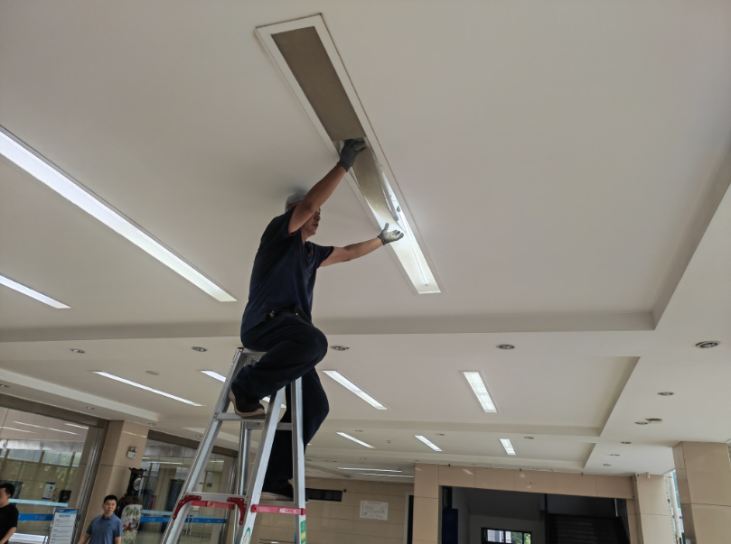 不畏酷暑,推进教学楼公共区域改造。今年暑期持续高温,校园物业服务中心坚持推进八栋教学楼公共区域改造项目。一线职工头顶烈日,加班加点完成了墙皮铲除、油漆补刷、照明设施修缮等一系列工作,确保教学区域以全新的面貌迎接师生返校。