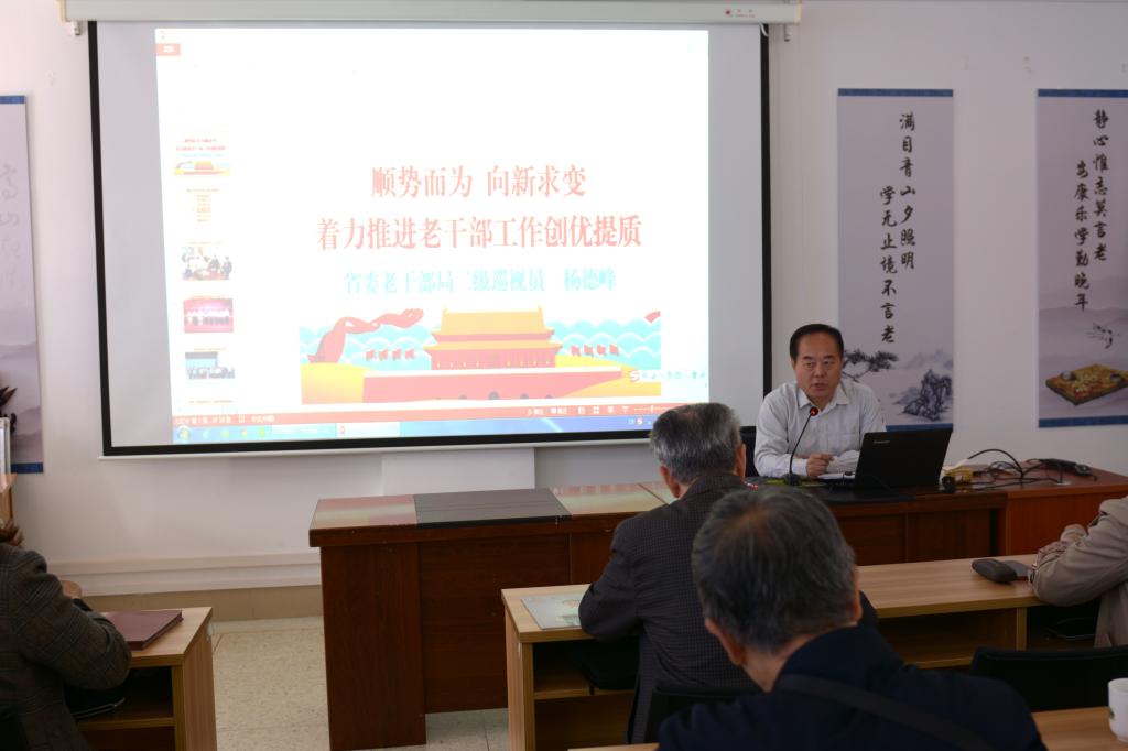 作为示范培训班第四讲嘉宾,杨德峰作了题为《顺势而为向新求变着力推进老干部工作创优提质》的报告。从贯彻中办发〔2022〕31号文件,突出党建引领;掌握常用规定,熟练运用政策;借鉴他山之石,提升工作质量;主动向新求变,探索退休管服等四个方面作了解读。整个报告高屋建瓴,即有政策解读,又有具体实操,还有其他单位先进典型做法,聆听完报告后,离退休老同志更加明确了下一步工作的推进思路和方法,收获颇丰。