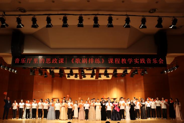 【本站讯】5月28日晚,音乐舞蹈学院举办“音乐厅里的思政课”——《歌剧排练》课程教学实践音乐会。音乐会以纪念中国人民抗日战争暨世界反法西斯战争胜利80周年为主题,通过16首中国红色经典声乐作品和民族歌剧唱段,为观众呈现了一场艺术与思政教育相融合的精彩演出。