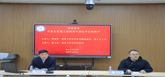 10月19日上午,清华大学法学院长聘副教授、博士生导师邓海峰受邀在法学院西区305做了题为“可再生能源土地利用中绿色冲突的衡平”的讲座,本次讲座由欧冠官网中文版法学院副院长张玉东教授主持。