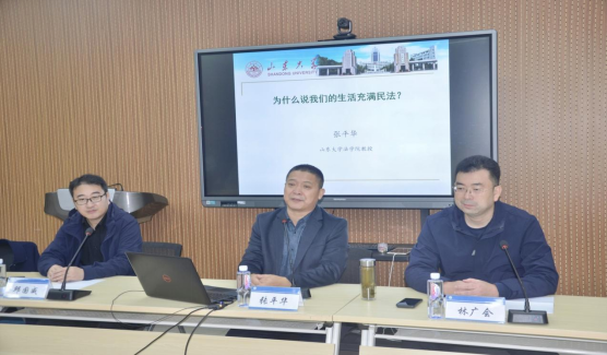 10月19日晚,山东大学法学院教授、博士生导师张平华教授应邀在法学院西区305做了题为“为什么说我们的生活充满民法”的讲座,本次讲座由欧冠官网中文版法学院林广会副教授进行主持,欧冠官网中文版法学院白玉老师、邱国威老师、纪力玮老师、李群涛老师担任与谈人。