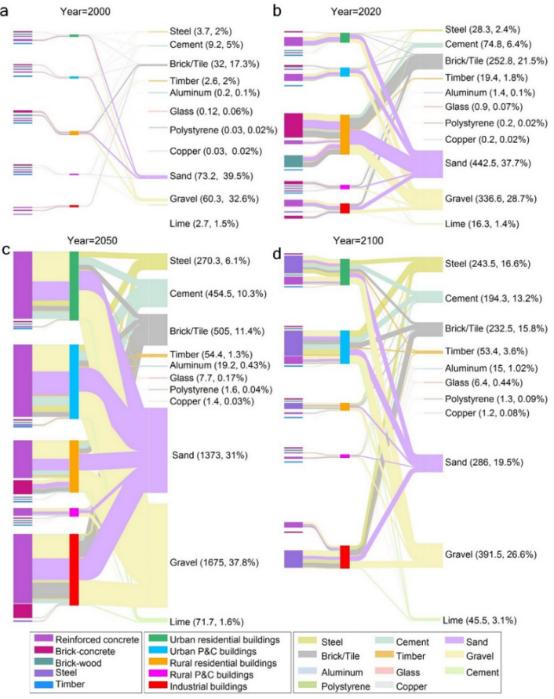 随着人口增长、经济发展及城市化进程的加速,中国建筑面积快速增长。然而,“短命建筑”的大规模拆除导致城市代谢速率持续增高,同时引发了建筑拆除垃圾无序收运、偷倒乱堆等一系列问题,对生态环境及居民健康造成了严重的负面影响。然而,由于中国建筑建造与拆除废弃物(CDW)资源化利用处于发展初期,且缺乏与建筑废弃物产生量相关的统计数据,特别是CDW来源、材料构成、产生环节及其产生量等尚不明确,这造成了中国CDW处置及利用难以进行规模化部署。为了提高CDW治理水平,进一步推进CDW资源化利用,亟需开展针对CDW长时期、多组分的精准预测及追踪,明确各类材料的来源及再利用潜力。