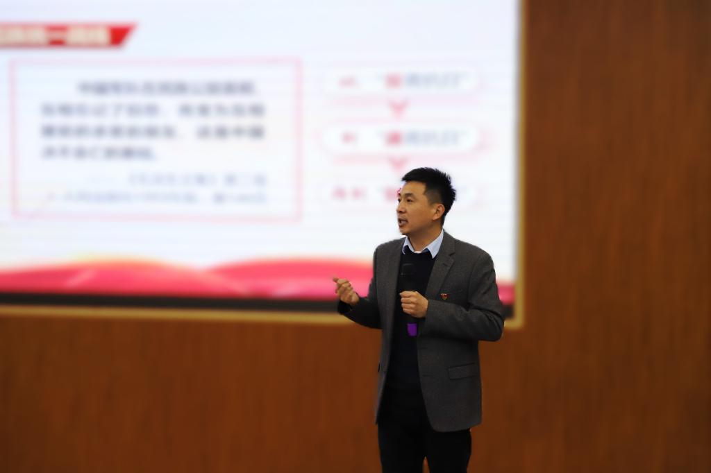 活动最后,苏鑫作了题为“冲破历史虚无主义迷障 认清谁是抗战中流砥柱”的专题讲座,通过“抗战之旗谁举起?”“统一战线谁缔造?”“抗战方向谁引领?”“中国希望谁点燃?”四部分内容展开讲解,明确了中国人民抗日战争胜利是中国共产党发挥中流砥柱作用的伟大胜利这一正确论断,勉励在场师生要旗帜鲜明反对历史虚无主义,做坚定的青年马克思主义者。