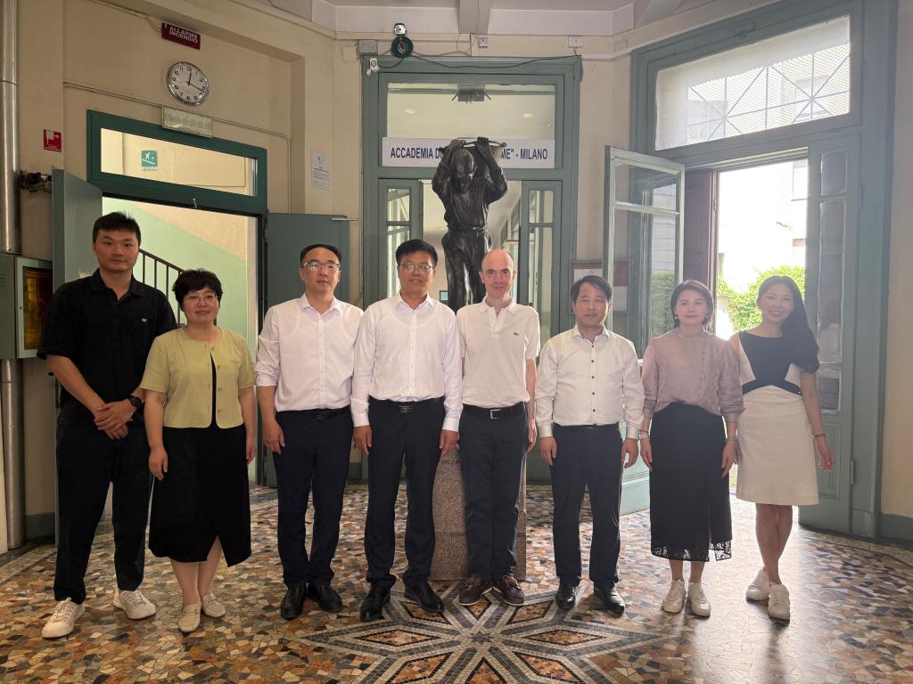 在意大利ACME美术学院(米兰),卢国强一行得到了校长乔瓦尼·普雷维德·普拉托的热情接待,双方就中外合作办学年度联合管理委员会会议、项目迎评准备工作、教师选派等事项进行了深入商谈,同意进一步规范中外合作办学项目运行,提升人才培养质量,以中外合作办学项目为基础推动两校全面合作。