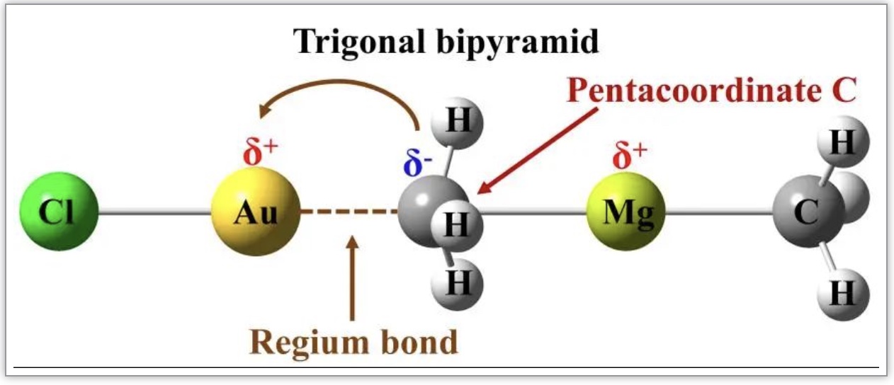 非共价相互作用在生物大分子自组装、功能材料构建等过程中发挥着至关重要的作用。在传统认识中,sp³杂化的碳原子通常作为电子受体。周航宇在李庆忠教授指导下,从电子给体的视角出发,探讨sp³杂化碳原子作为“非常规”电子给体所形成的非共价相互作用,通过多种理论计算手段,证实了Be(CH₃)₂和Mg(CH₃)₂中的甲基碳原子可以作为电子给体形成硫键和regium键,形成的regium键使得甲基基团发生转移,得到了三角双锥五配位碳原子结构。该系列研究为深入理解新型非共价相互作用的本质提供了新证据。